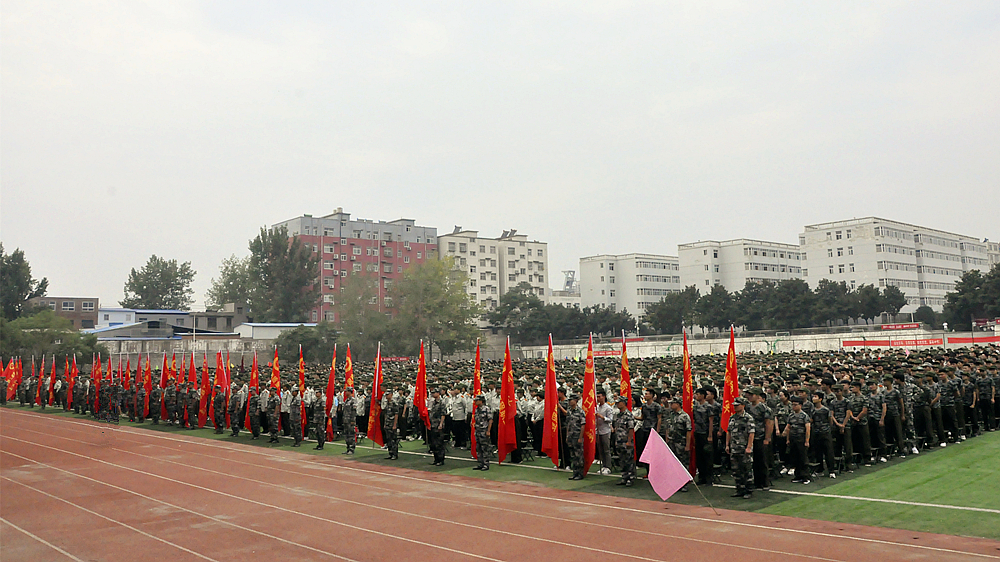 9月10日上午,我院在田径场隆重举行2018级新生开学典礼暨军训动员大会。院领导郑海金、徐宗华、葛长龙、张晓东、姜葆亮、温亚丽及新生军训团团长杨亚洲出席典礼。相关职能部门和六系一部负责人以及教师代表、2018级全体新生参加典礼。典礼由常务副院长徐宗华主持。