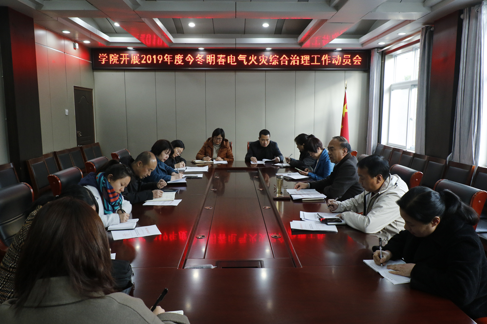12月2日下午,学院在办公楼四楼会议室召开2019年今冬明春电气火灾综合治理工作暨第三届安全知识教育演讲比赛动员会。副院长葛长龙出席会议并讲话,六系两部和党办、院办、宣传部、学生处、后勤处、保卫处等负责人参加了会议。