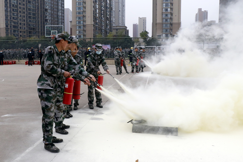 随后,全体新生及部分教职工进行了灭火实战演练。