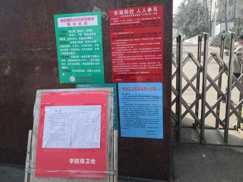 疫情当前,责任在肩,克服困难,冲锋在前。接到疫情通知,保卫处迅速行动、召开会议、落实部署。于1月26日第一时间在学院南、北大门分别张贴了“关于进出校门人员管理的通知”。按照学院下发的《关于成立新型冠状病毒感染肺炎疫情防控工作领导小组通知》的要求,接着起草了“疫情期间加强校园进出人员、车辆管理工作的通知”和“疫情期校园车辆管控通知”,及时制做了进出人员详情登记表。 2月3日在“平安质院”微信公众号推出“关于转发教育部疫情防控致全国大学生的一封信”。
