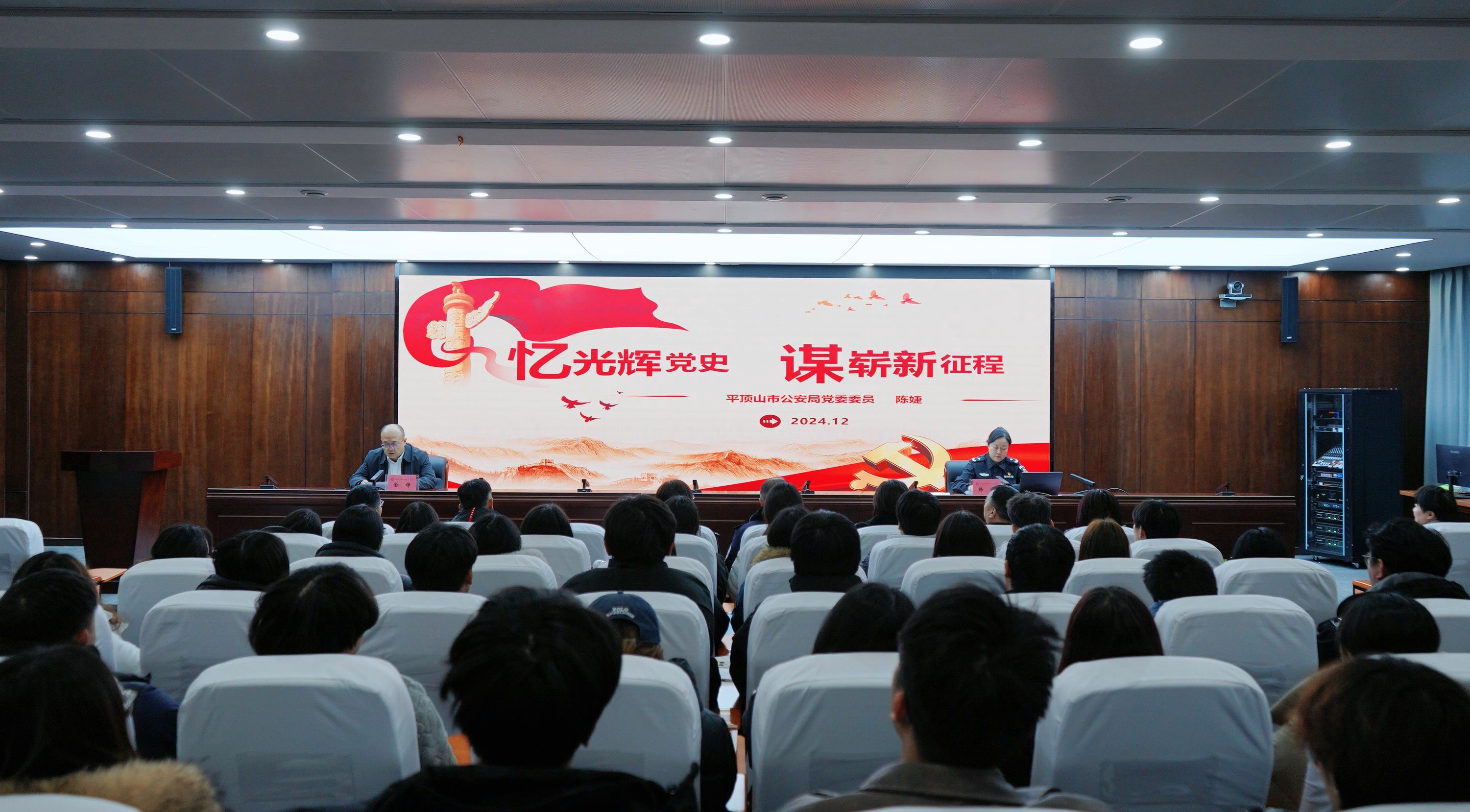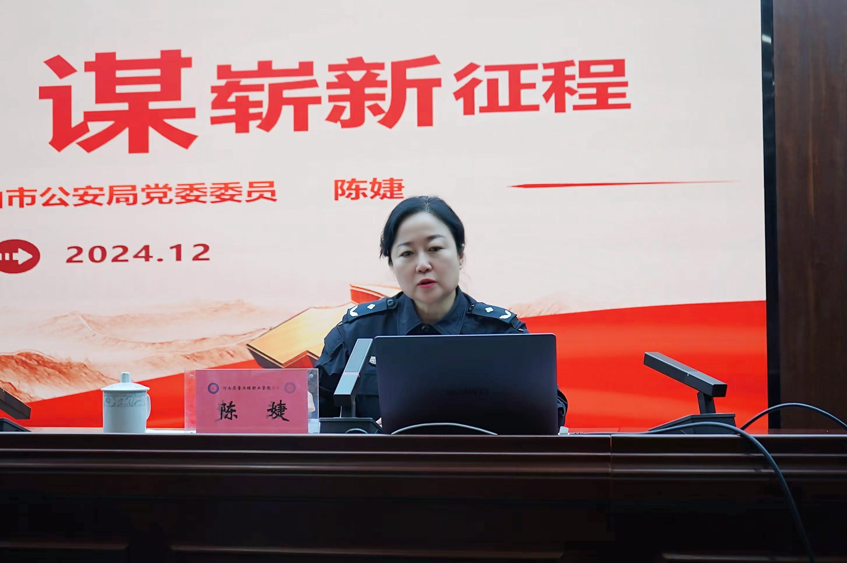 12月18日,平顶山市公安局党委委员陈婕受邀来到我院为师生带来一场题为《忆光辉党史谋崭新征程》的党史宣讲。市公安局湛河分局主要领导及有关同志、网安支队相关负责同志和学院在校领导班子成员及师生代表参加宣讲会。