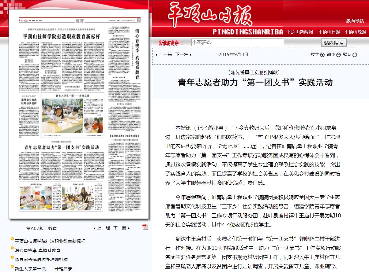 媒体之声|《平顶山日报》:青年志愿者助力“第一团支书”实践活动
