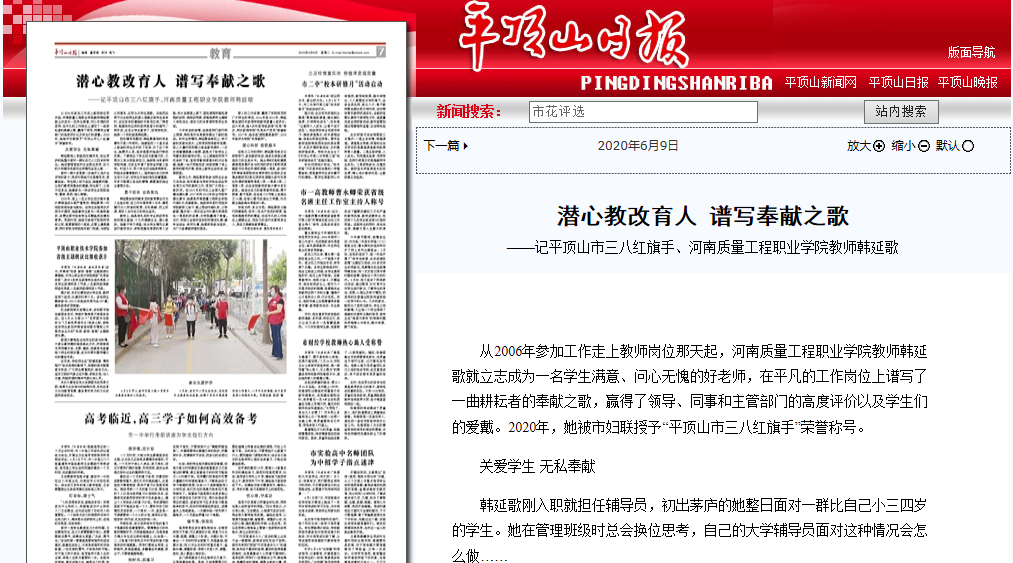 媒体之声|《平顶山日报》:潜心教改育人 谱写奉献之歌——记平顶山市三八红旗手韩延歌