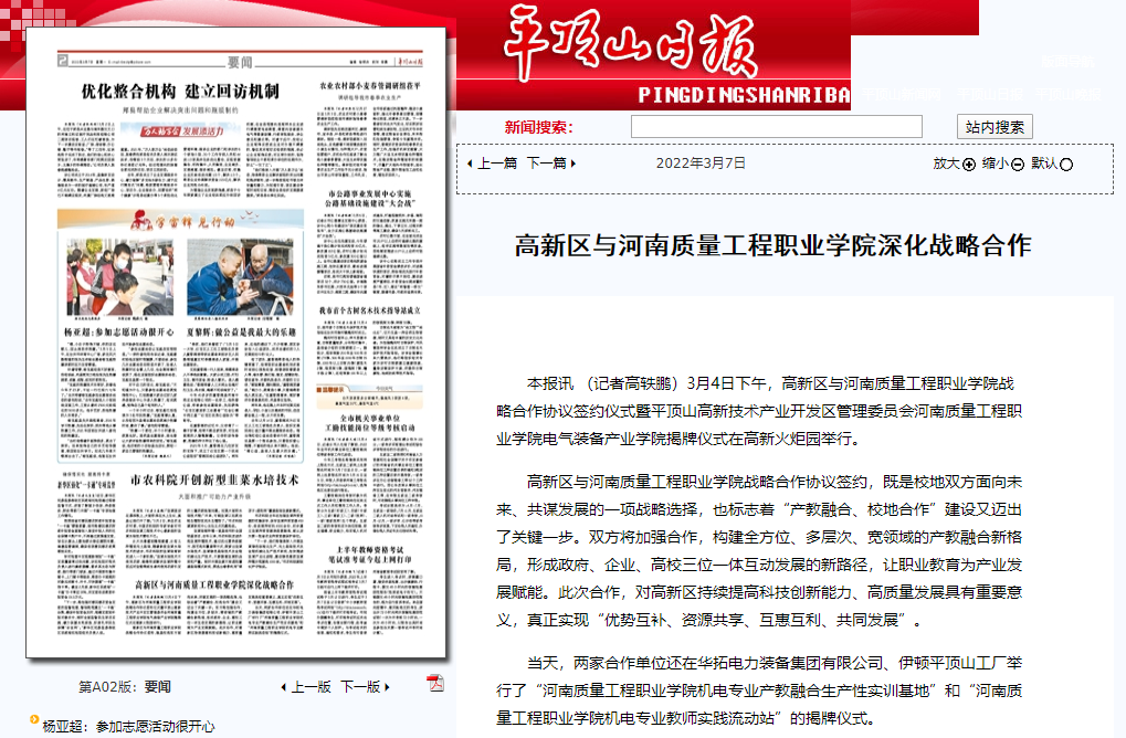 媒体之声 | 《平顶山日报》:高新区与香港宝典全年资料库深化战略合作