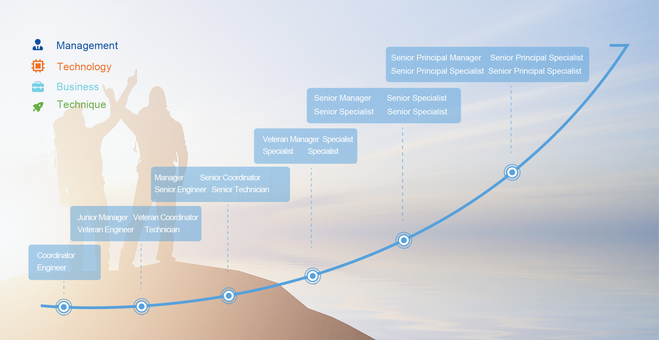 According to company business development strategy and talents value, WEIFU provides multiple development channels and 4 career directions, including management, technology, business and skill for staff who has various potentials and work interests.