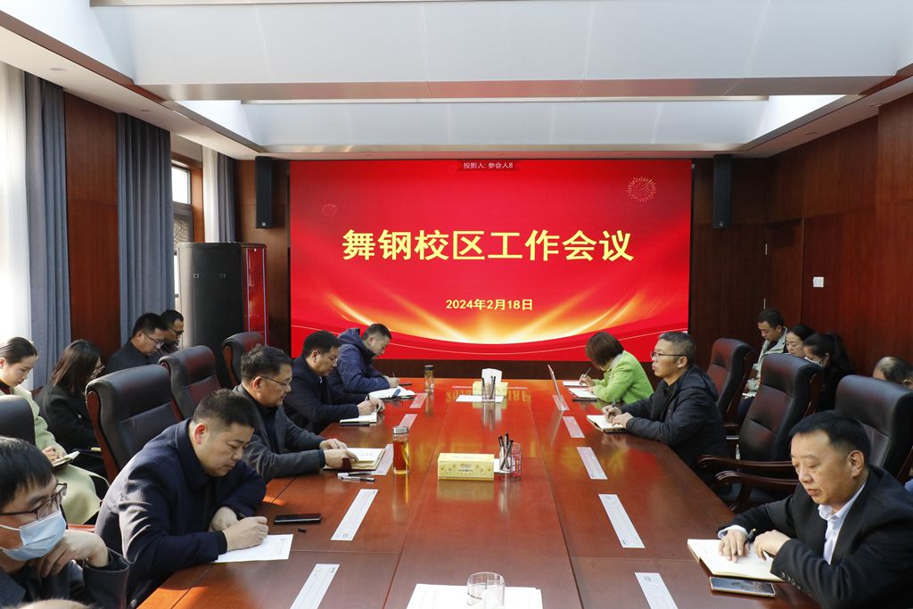会议听取了舞钢校区管委会就目前校区建设进展情况及开学准备工作情况汇报,各职能部门分别介绍了目前所负责的工作任务进展、进度安排及存在的问题。