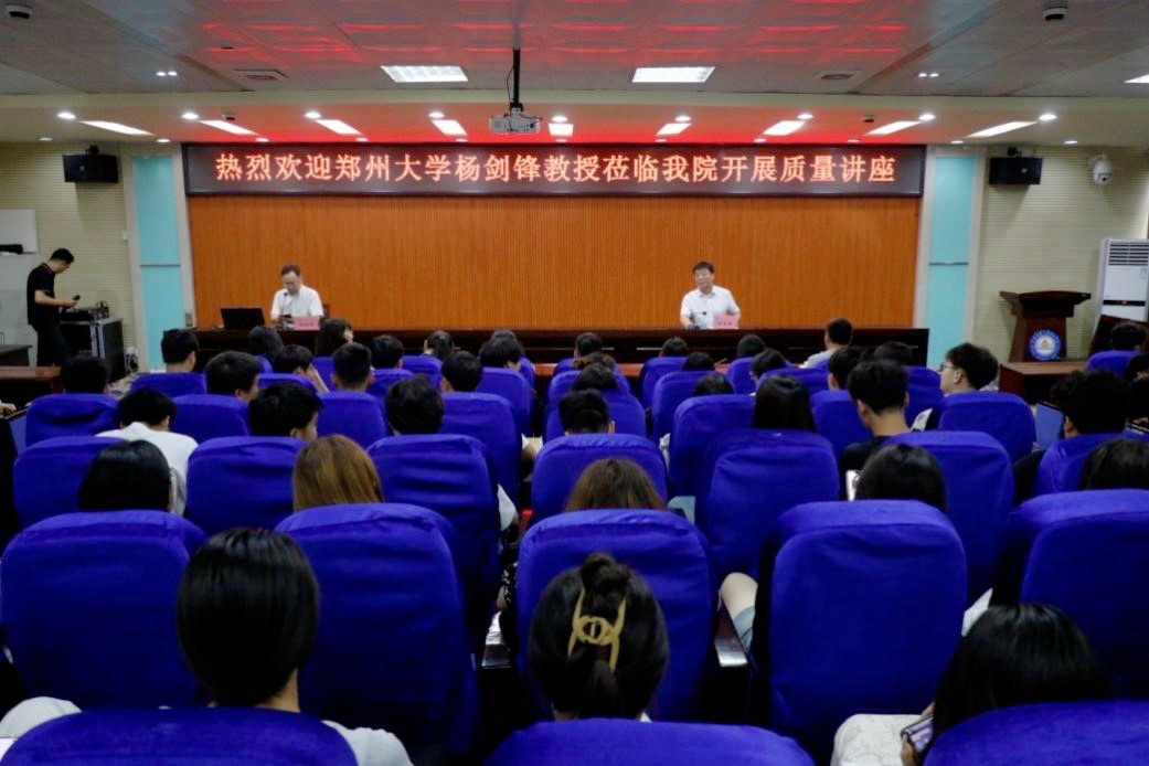 5月22日下午,我院特邀郑州大学国际质量发展研究院院长、博士生导师杨剑锋教授在致知楼第二学术报告厅开展了题为《如何进行质量管理》的专题讲座。学院质量教育教学团队优秀教师与校本部优秀学生代表共120余人参加了此次活动。副院长张虽栓主持会议。