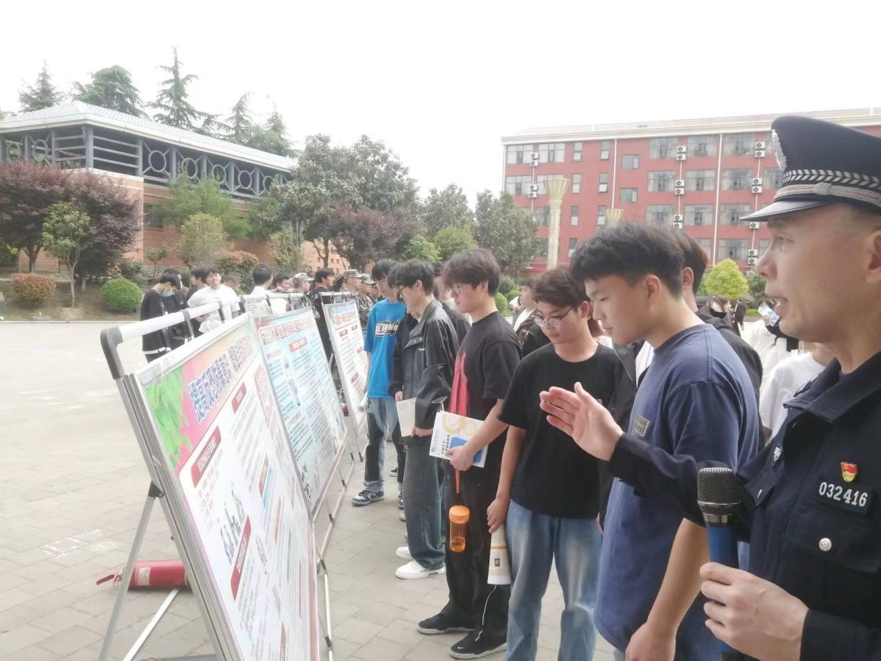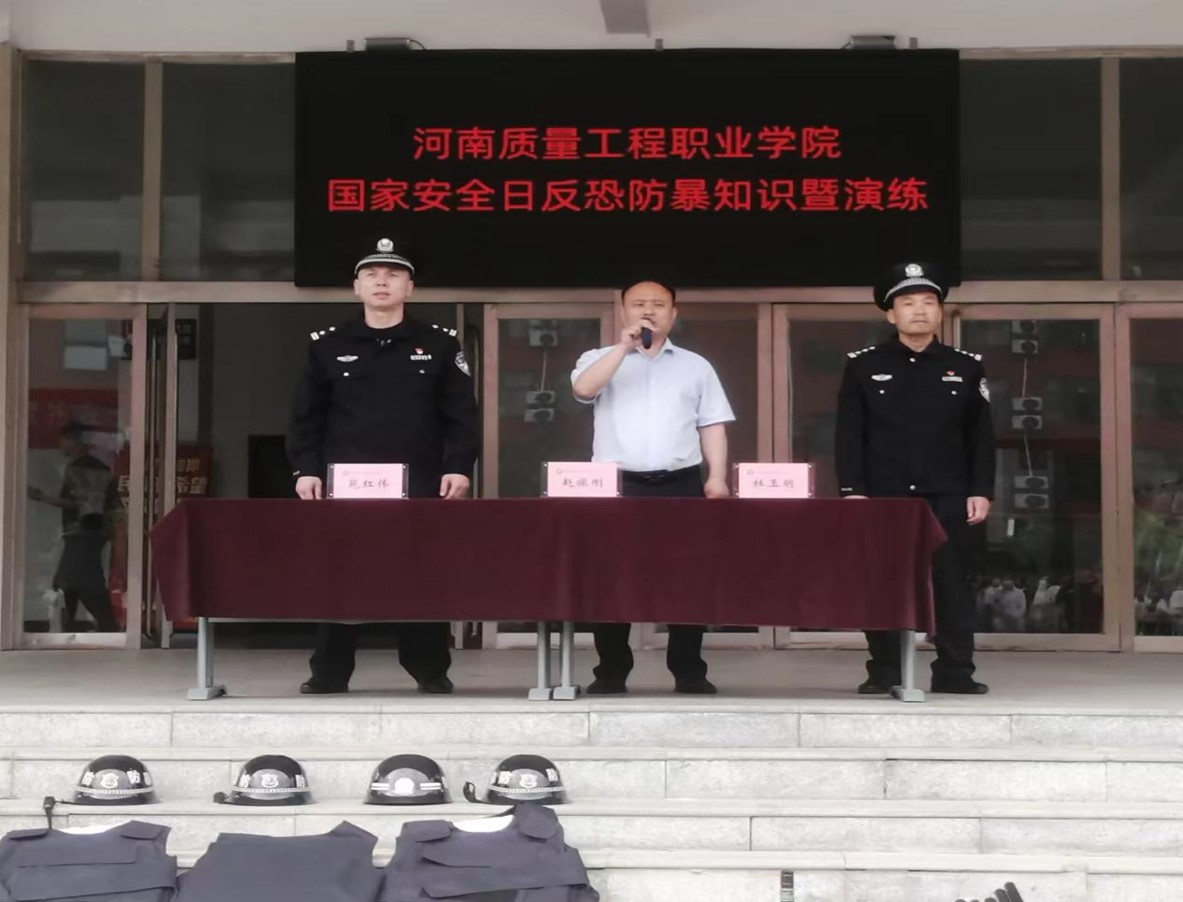 今年4月15日是第九个全民国家安全教育日,当天下午,保卫处特邀湛河区公安分局反恐支队教导员杜玉明警官、副大队长苑红伟警官,在学院质量广场开展国家安全法治教育及反恐防暴安全知识讲座。各二级学院学生和安保人员近800余人,参加了此次活动。