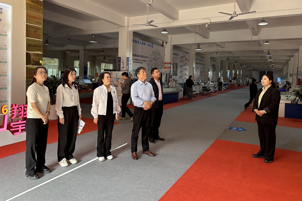 张虽栓一行参观了翔宇医疗产品展厅、国家企业技术中心创新展厅,详细了解了企业在生产经营、产品结构、行业优势和科技创新等方面的情况。
