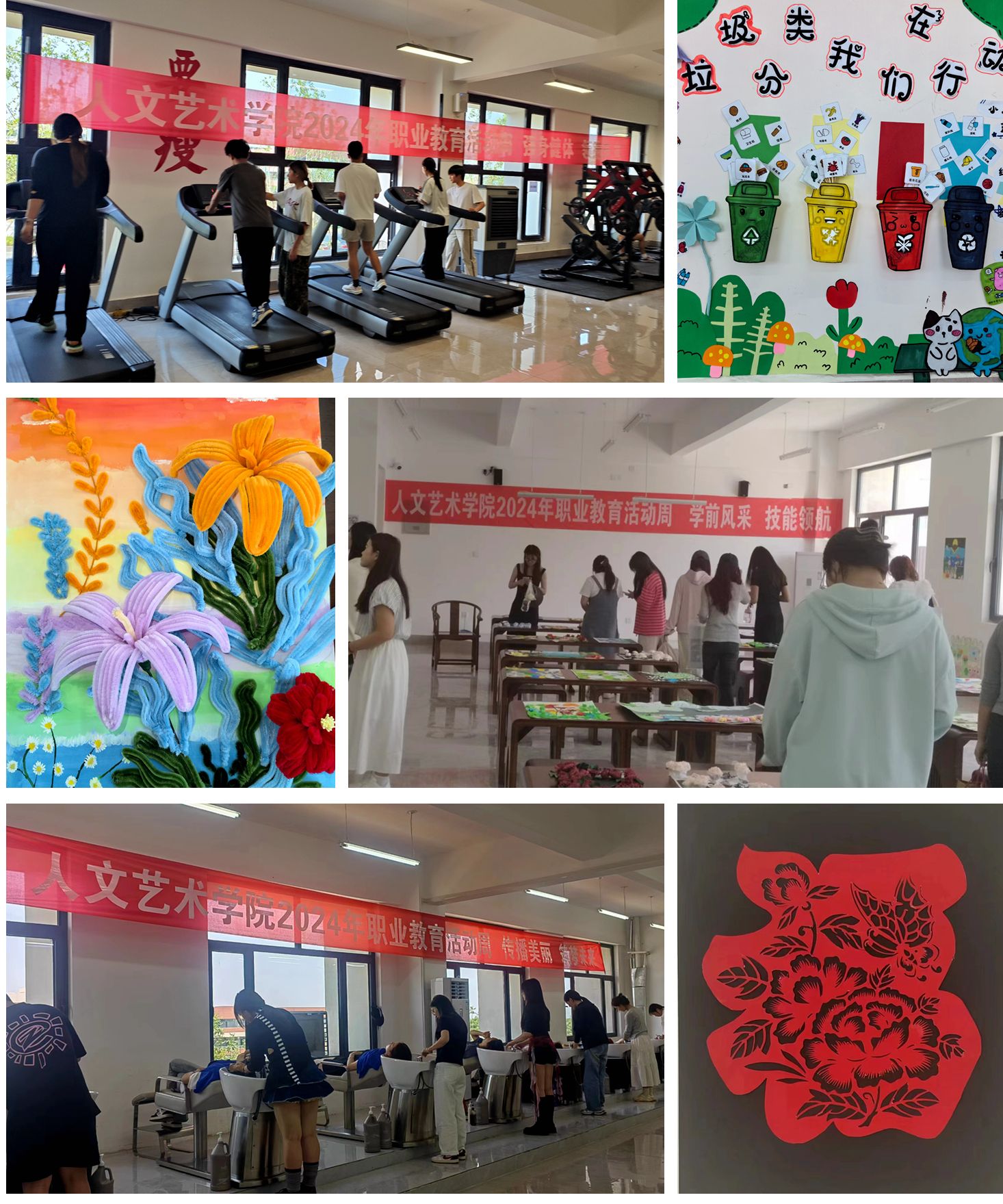 5月13日至15日,人文艺术学院围绕“一技在手,一生无忧”主题,开展了2024年职业教育活动周系列活动,举办了“传播美丽、筑梦未来”人物形象设计专业洗发公益活动、“学前风采、技能领航”学前教育专业幼儿园环境创设作品展和“强身健体、领跑未来”健身训练指导公益活动。