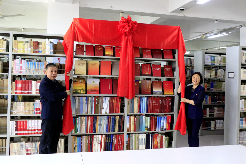 随后,与会领导共同为图书馆二楼阅览室“平顶山市党史方志红书架”揭牌。