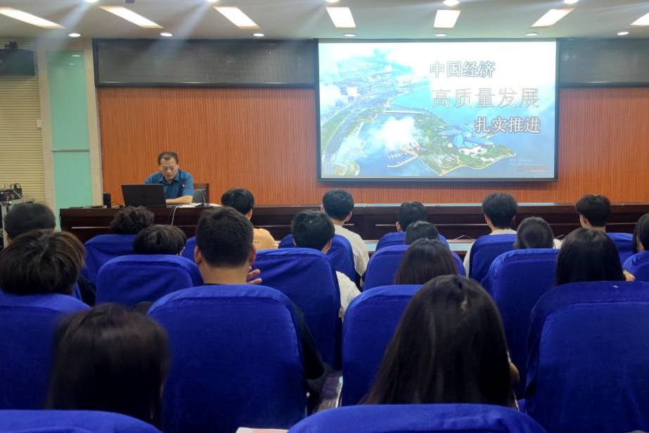 5月11日下午,学院党委委员、平顶山开放大学校长张留成在致知楼第二学术报告厅,为经济与管理学院23级跨境电商5班、6班的同学讲授了题为《中国经济高质量发展扎实推进》的形势与政策课。