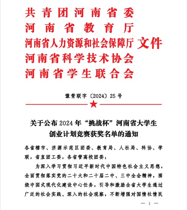 近日,由共青团河南省委、河南省教育厅、河南省人力资源和社会保障厅、河南省学生联合会共同举办的2024年“挑战杯”河南大学生创业计划竞赛活动中,我院建筑工程学院取得省银奖2项,省铜奖2项的好成绩。实现了我院“挑战杯”创业计划竞赛零的突破。