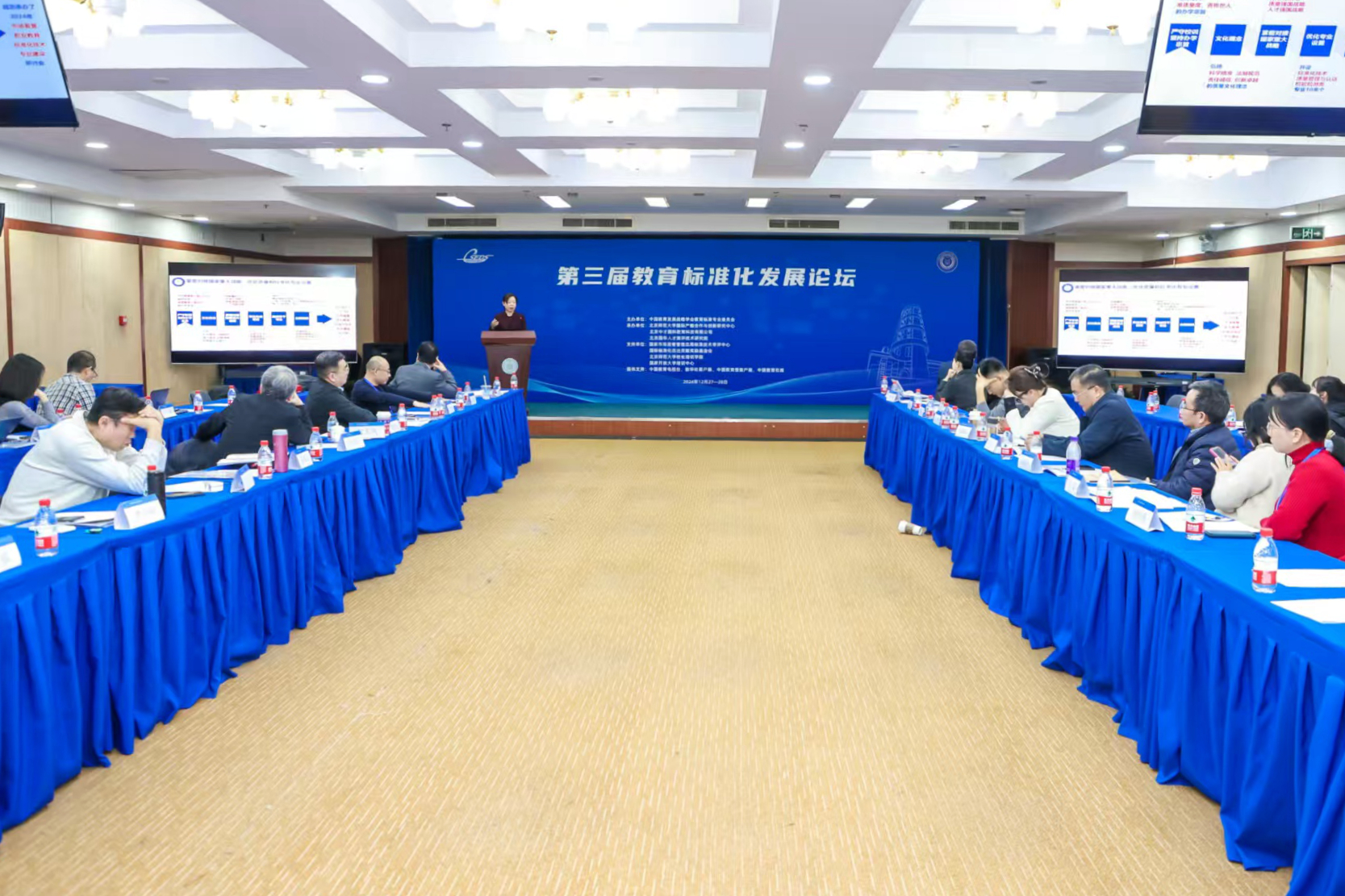 为了深入学习贯彻党的二十届三中全会和全国教育大会精神以及中共中央国务院印发的《国家标准化发展纲要》,推动实施国家标准委、教育部等五部门制定的《标准化人才专项行动计划(2023—2025)》,2024年12月27—28日,由中国教育发展战略学会教育标准专业委员会主办的第三届教育标准化发展论坛在北京师范大学举办,我院受邀参会。在本次大会的“SOP标准化人才生态圈”平行论坛上,副院长席会平作“建设SOP人才基地 开启标准化人才培养新篇章”报告。