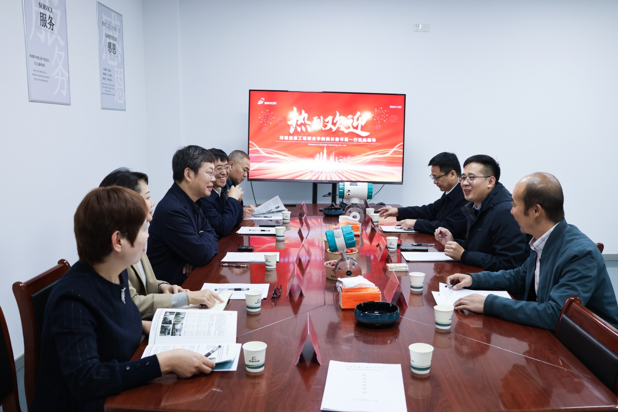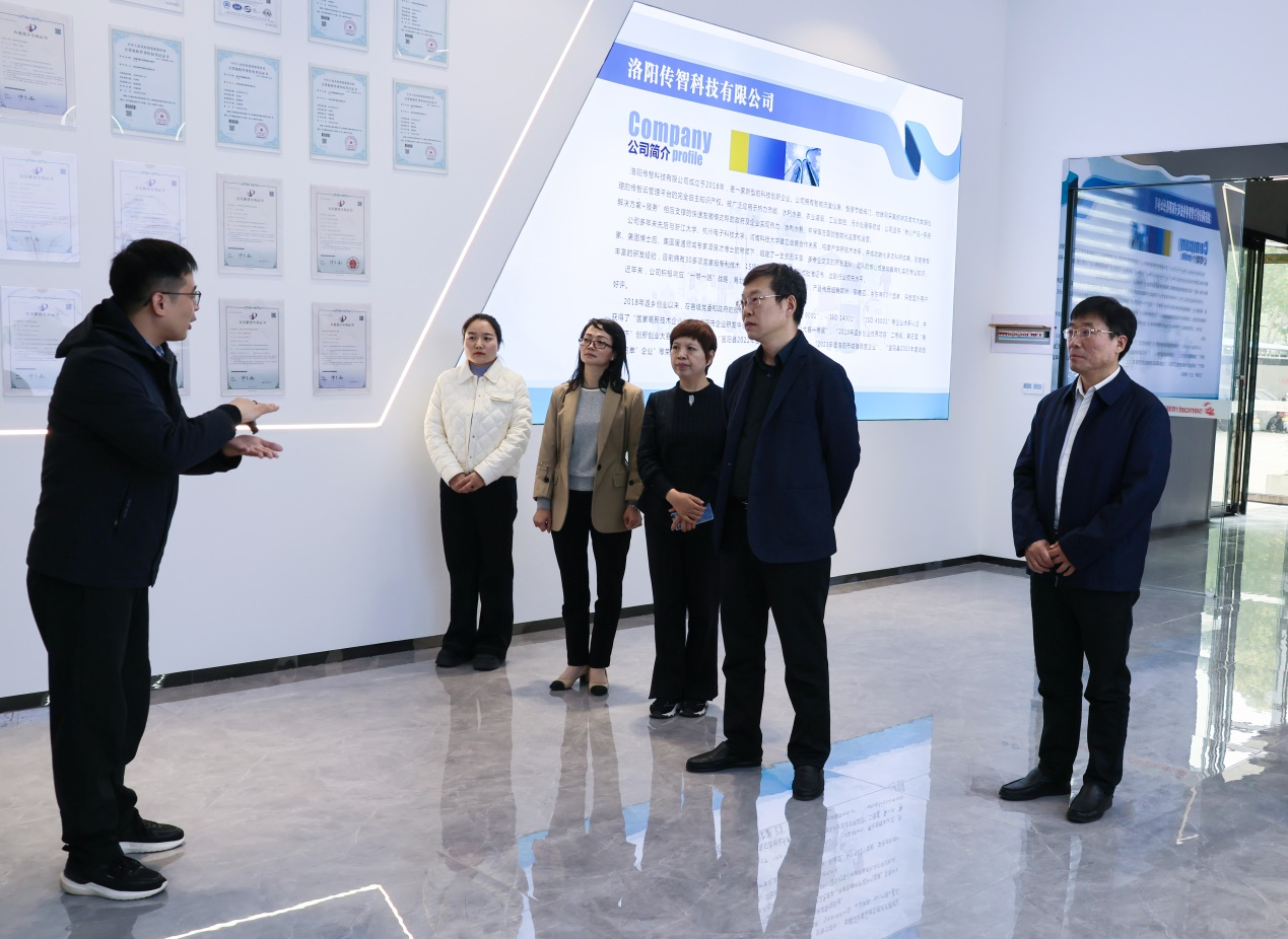 鲁书喜一行深入洛阳传智科技有限公司生产车间和检测中心进行实地考察。学院杰出校友、公司总经理朱帅意详细介绍了传智科技在智能仪器仪表、工业自动控制系统装置、智能家庭消费设备等多个领域的前沿产品与创新项目,并表示公司许多产品已成功销往63个国家和地区,赢得了社会广泛赞誉。