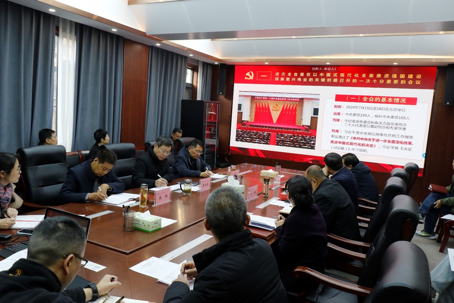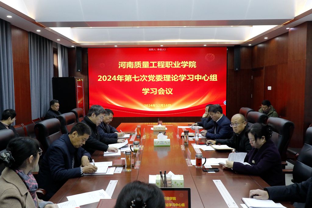 12月16日,学院党委理论学习中心组在办公楼第一会议室开展第七次集体学习,集中学习党的二十届三中全会精神。学院党委副书记、院长鲁书喜主持会议,院领导姜葆亮、张林、金铮、席会平、张虽栓及其他党委理论学习中心组成员参加会议。