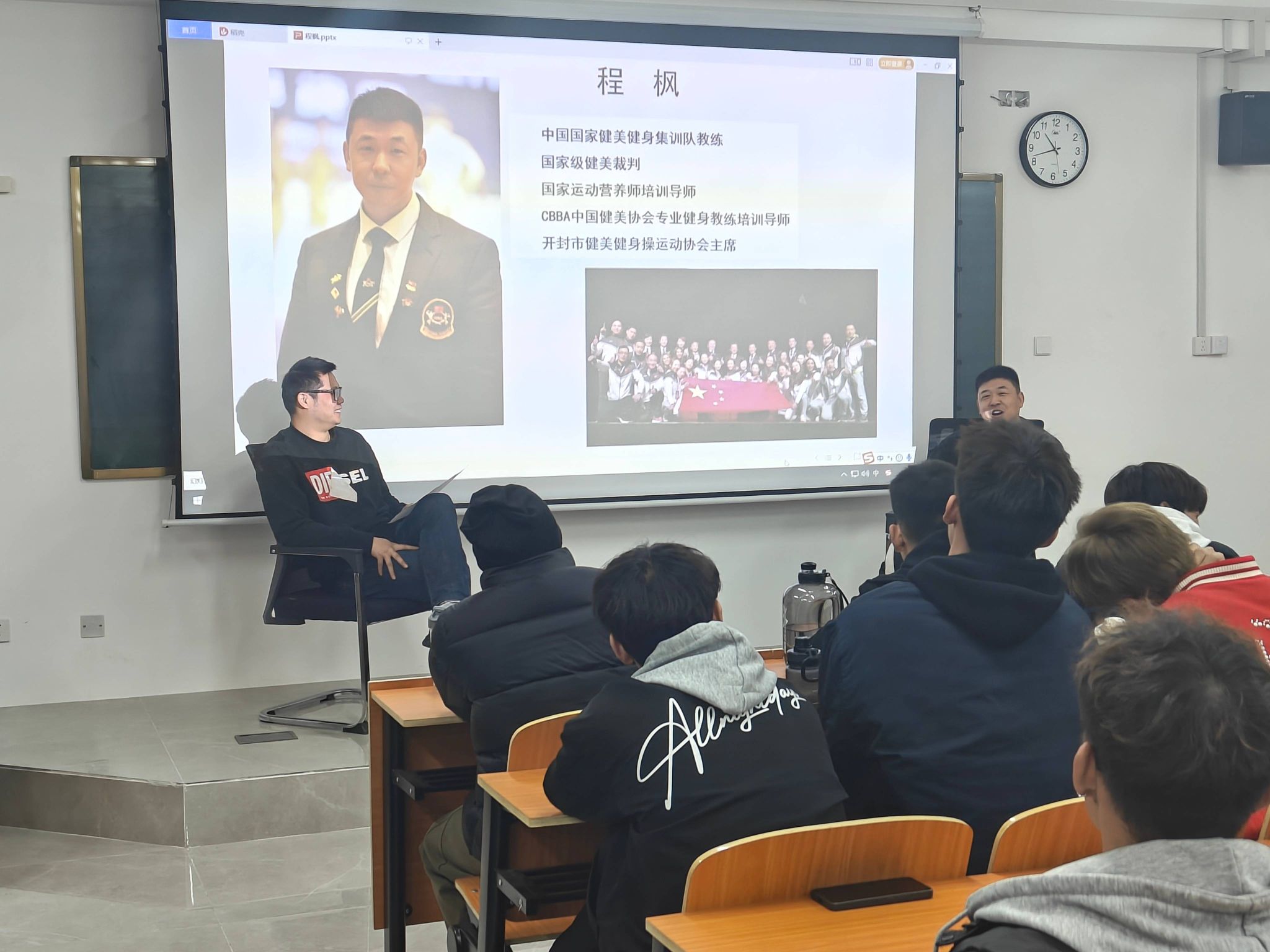 程枫老师在致知楼303教室与同学们进行了深入的健身理论交流。交流以问答的形式展开,我校专业课老师针对日常教学过程中同学们关心的热点问题进行了提问,程枫老师则凭借自己丰富的经验和专业知识,为同学们一一答疑解惑。问答内容涵盖了专业训练知识、健身健美赛事以及未来就业方向等多个方面,让同学们受益匪浅。同学们针对自己在运动训练中遇到的实际问题向程枫老师请教,程枫老师耐心地作答。整个讲座过程中,同学们认真聆听,积极参与,现场气氛热烈而融洽。