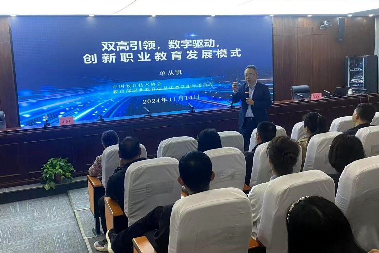 11月14日下午,国家数字化学习资源中心主任、全国社区教育数字化学习联盟理事长单丛凯教授应邀到我院做《双高引领,数字驱动,创新职业教育发展模式》专题报告。平顶山广播电视大学、教务处、现代教育技术中心、科研外事处及各二级院部负责人和骨干教师参加会议。会议由副院长席会平主持。
