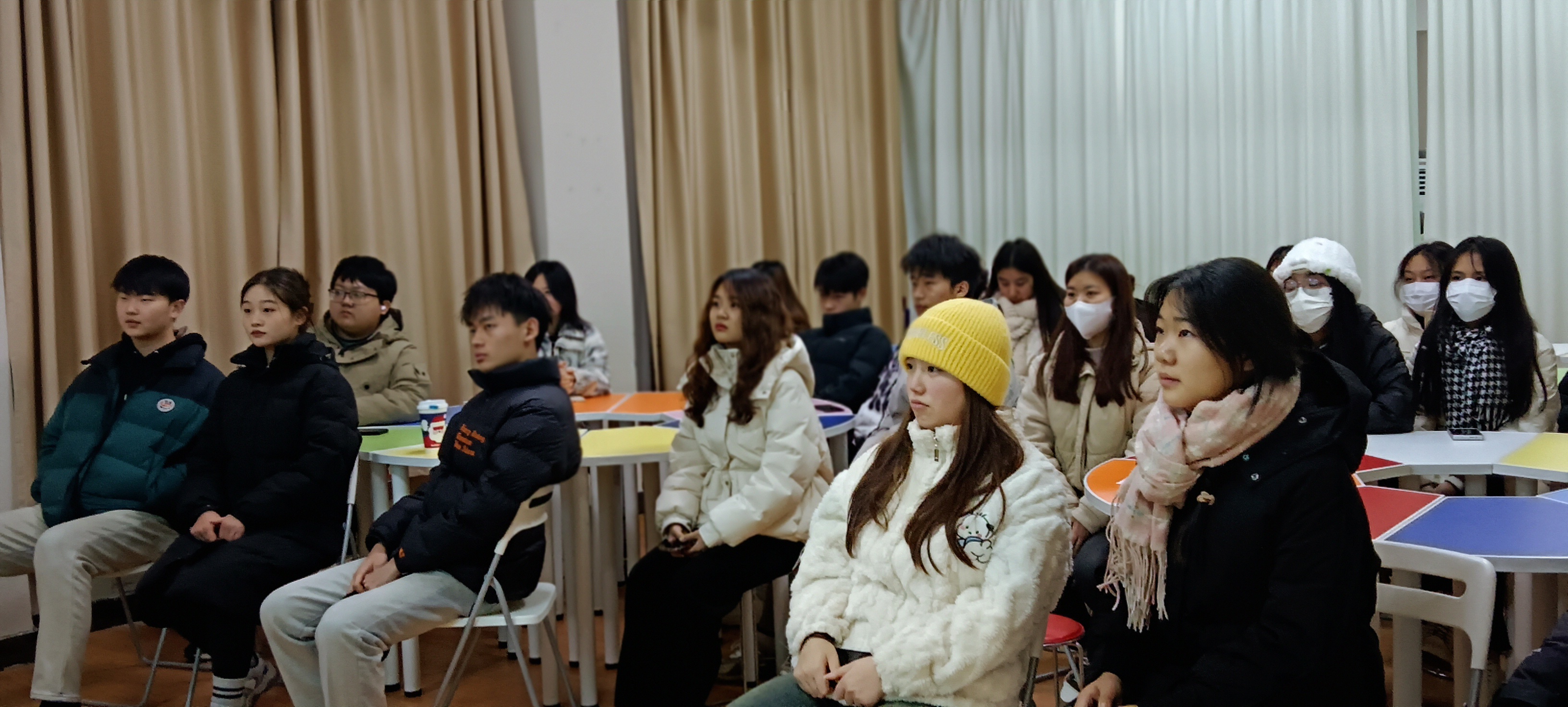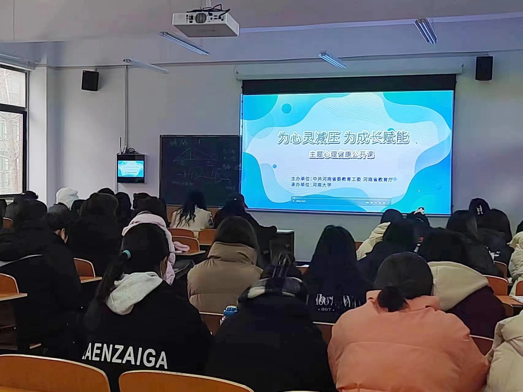 (上图)我院学生集中观看公开课