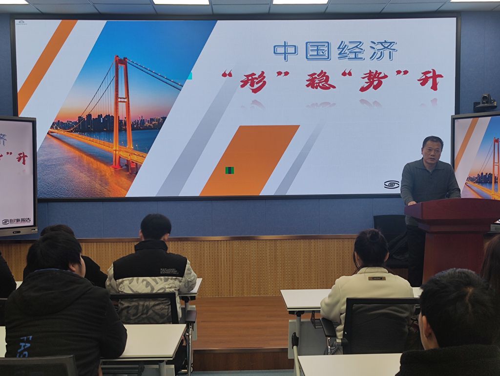 12月28日,学院党委委员、平顶山开放大学校长张留成在知行楼8401教室为食品化工学院23级食加1、2班的同学讲授了题为《中国经济“形”稳“势”升》的形势与政策课。