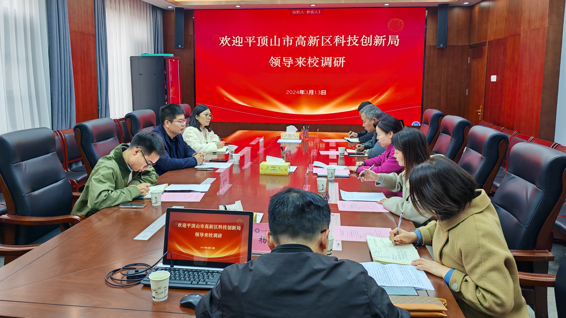 3月14日下午,平顶山市高新区科技创新局副局长马骏一行到我院调研,副院长席会平陪同调研。