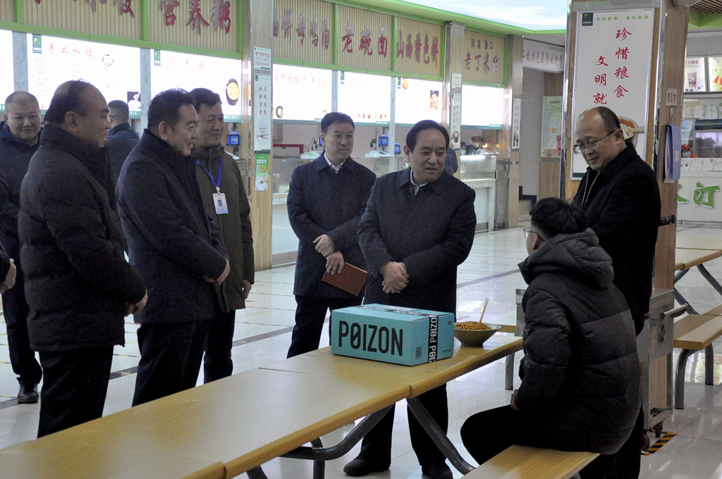 黄庚倜走进思源餐厅,查看加工操作、食品留样等场所,询问豆浆制作、烤蜜薯售价、超市物品价格、自制饮品、窗口营业情况等,了解洗碗机等设备运行情况,与勤工俭学学生、用餐学生亲切交流,听取学生对饭菜质量和用餐环境的意见建议。