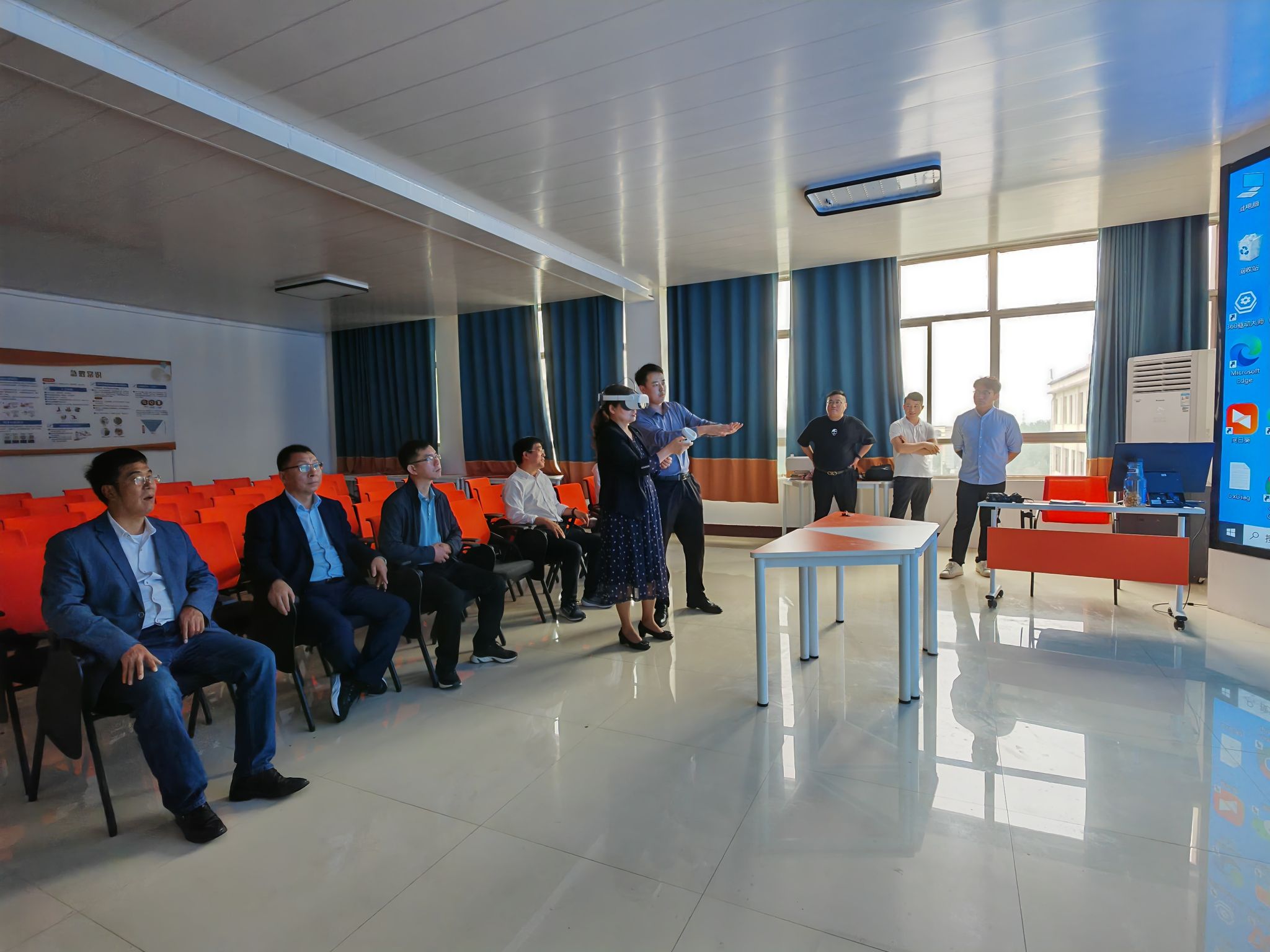 李志萍一行首先到菏泽家政职业学院,就智慧养老相关专业建设进行了深入交流探讨,参观了智慧养老虚拟仿真实训室,详细了解了与山东国信国际经济技术合作有限公司、山东省康养中心合作办学情况。