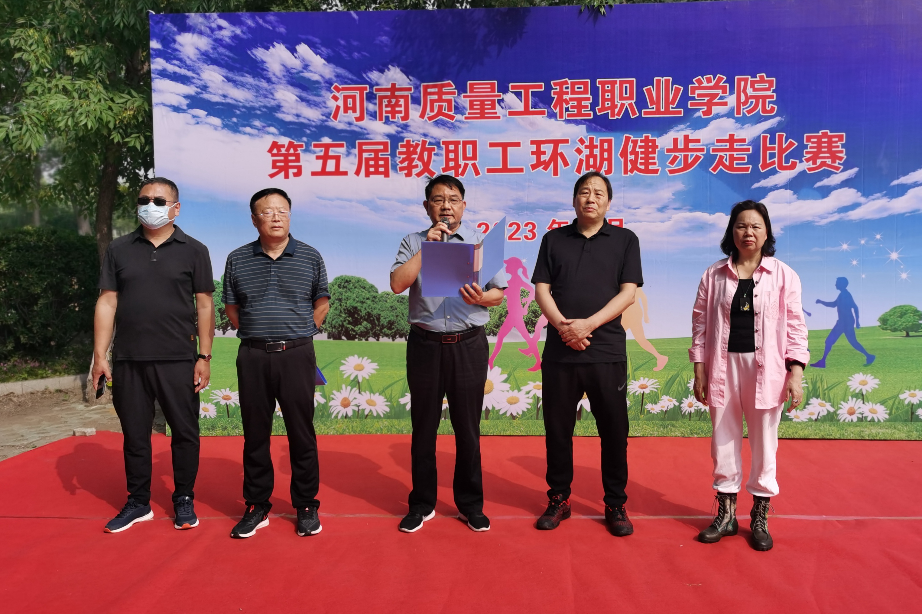 5月19日上午,我院第五届教职工“环湖健步走”活动在白鹭洲生态园举行。院领导姜葆亮、秦中文、田新现出席开幕式并参加活动,院工会全体人员及教职工500余人参加活动。副院长田新现主持开幕式。