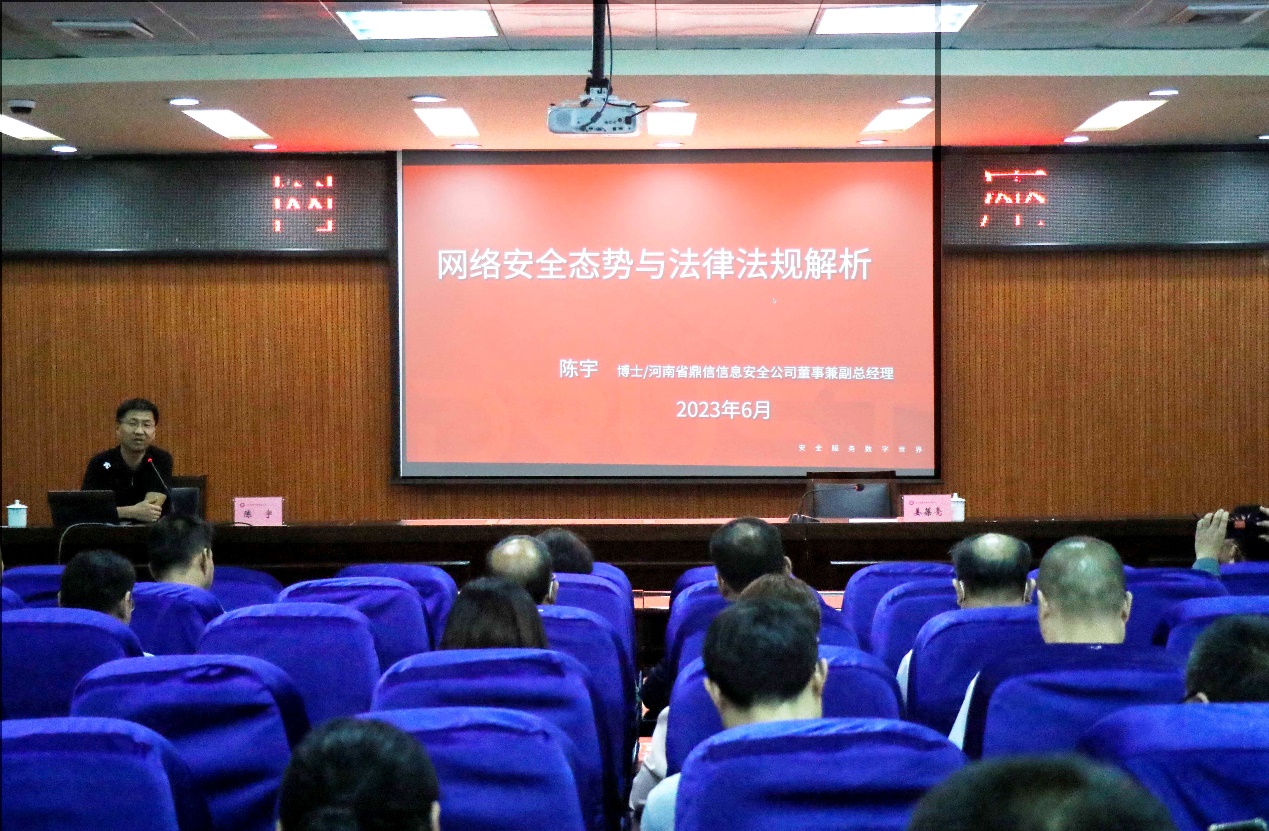 6月7日上午,学院在致知楼第二学术报告厅举行网络安全讲座,讲座由我省网络安全领域的知名专家河南省鼎信信息安全等级测评有限公司副总经理陈宇博士主讲。党委副书记、工会主席姜葆亮主持讲座,学院正科级及以上人员参加学习。