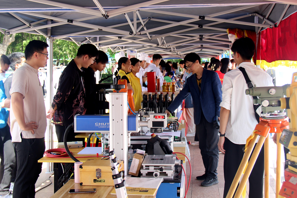 我院八个二级学院师生,以工业机器人、激光加工、电商直播、调酒、茶艺、计算机维修、印染等形式向市民宣传展示学院专业、特色等,用实际行动践行“技能:让生活更美好”这一主题。现场3D打印作品展、烘焙、果酒酿造、遥控车模型DIY竞速、BIM建模作品及手绘作品展示等赢得参观的市民纷纷称赞。
