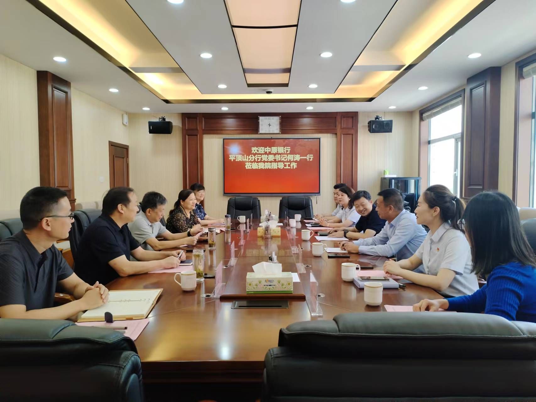 9月4日下午,中原银行平顶山分行党委书记、行长何涛一行六人莅临我院就科创新城新校区建设融资方案进行研讨交流。学院领导邱红标、李志萍、秦中文出席会议,财务处、发展规划处等相关部门负责同志参加会议。