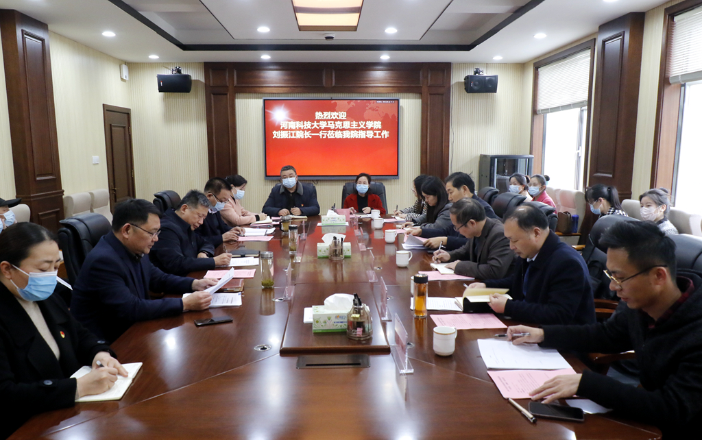 根据河南省委教育工委、河南省教育厅安排,3月23日下午,以河南科技大学马克思主义学院院长刘振江为组长的全省高校思想政治理论课“大听课 大调研”活动第十四调研组一行6人莅临我院开展思政课调研工作。学院领导邱红标、徐宗华、姜葆亮出席汇报会,相关部门负责人和思政课教师代表参加会议。学院党委副书记、工会主席姜葆亮主持会议。