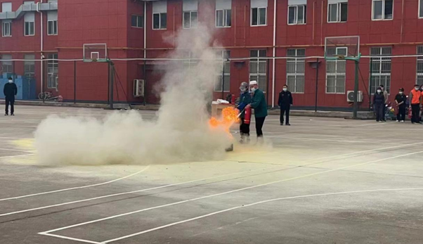 保卫处消防科工作人员讲解了干粉灭火器、灭火毯、消防防罩面具、消防水带、枪头的正确使用方法,并进行了实际操作演示,部分师生代表进行了器材演示,其他师生现场进行了观摩。随后进行了消防灭火实战演练。