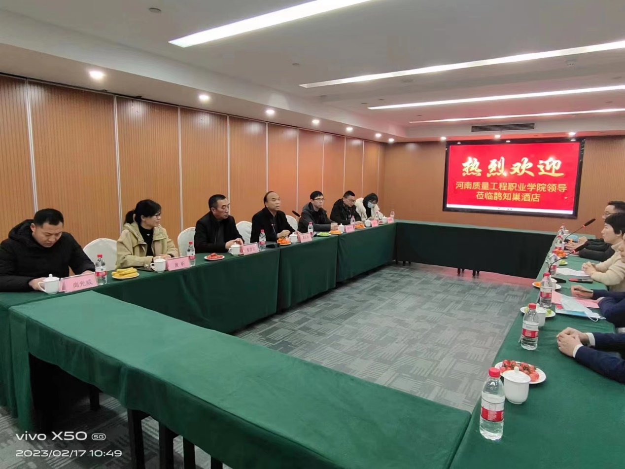 2月17日上午,副院长葛长龙一行到平顶山鹊知巢艾佳酒店考察交流,开展访企拓岗促就业活动,鹊知巢艾佳酒店董事长李晓青热情接待了考察组成员。