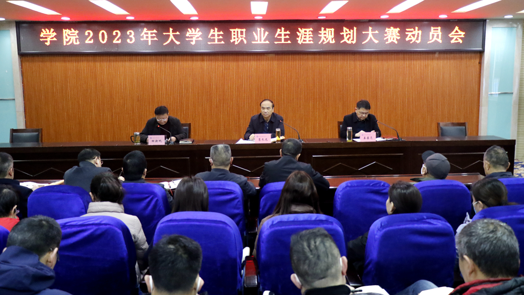 会上,田新现宣读了学院《关于举办2023年大学生职业生涯规划大赛的通知》。