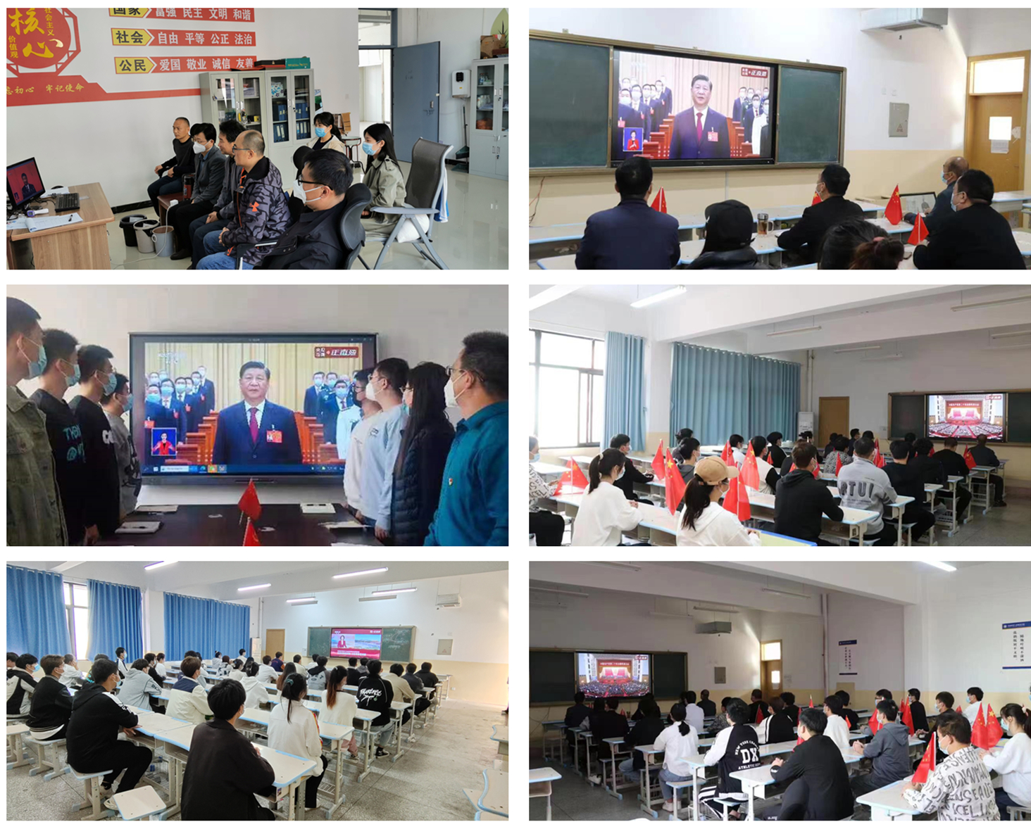 学院各基层党组织、二级学院、班级分别在会议室、多媒体教室、宿舍设置分会场,精心组织党员干部、师生利用网络、广播、电视、新闻客户端等多种形式认真收听收看大会直播。