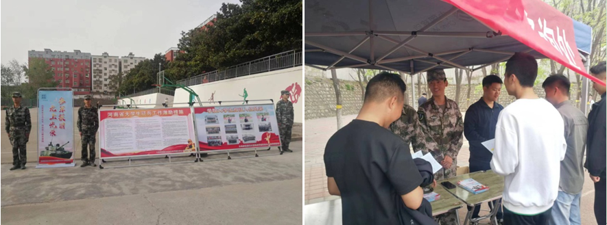 为进一步做好2023年下半年征兵工作,4月11日,学院武装部利用毕业生“双选会”,以发放参军入伍明白卡、张贴宣传海报、设立征兵政策咨询点等形式,全方位、多角度宣传动员广大青年学子携笔从戎,投身火热军营。