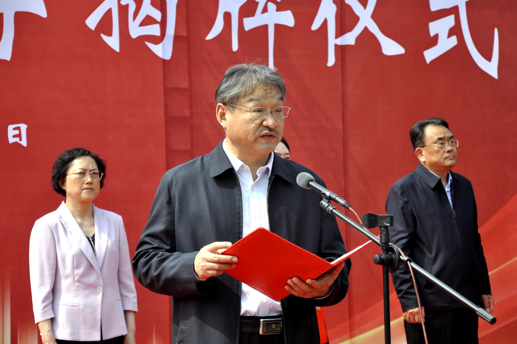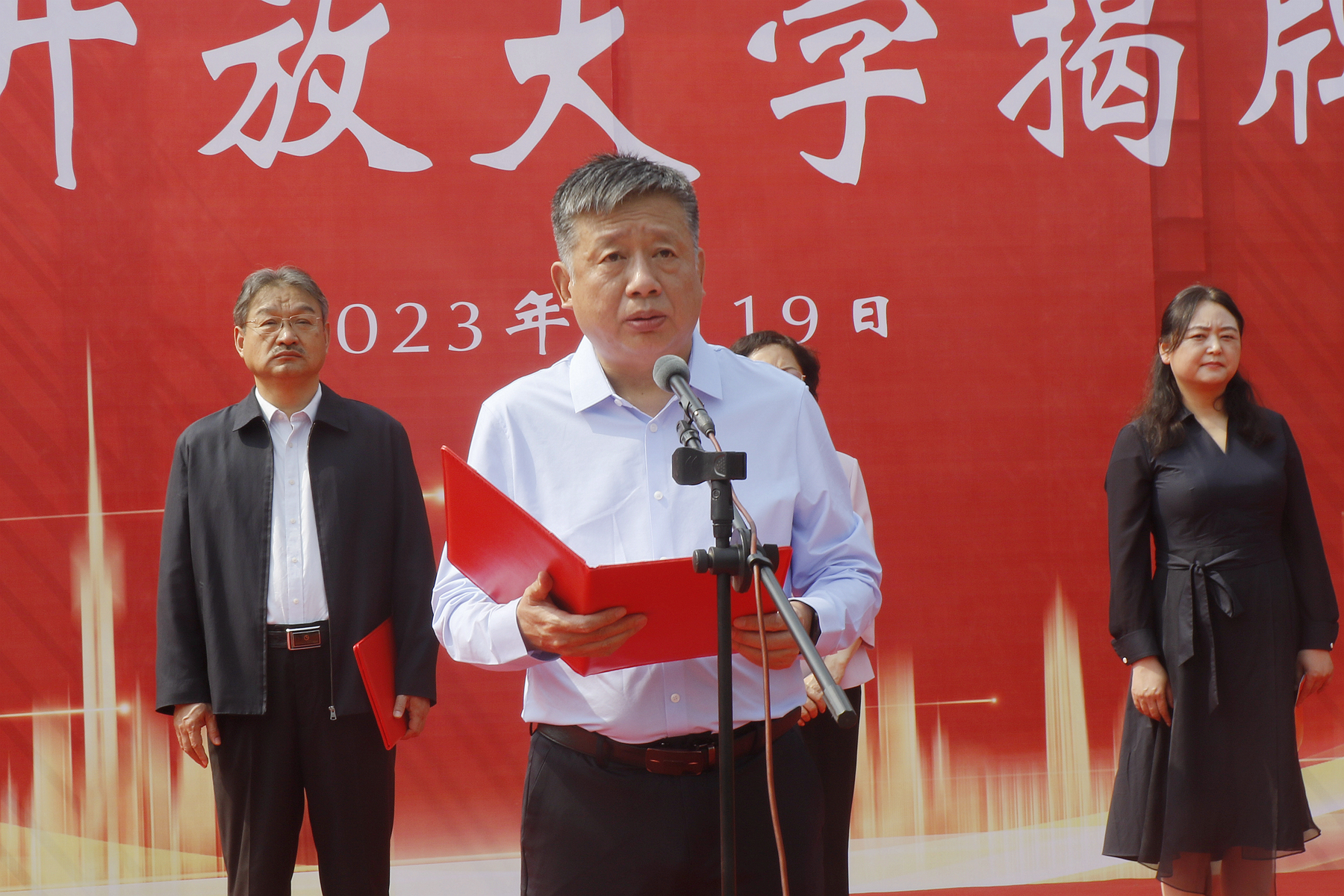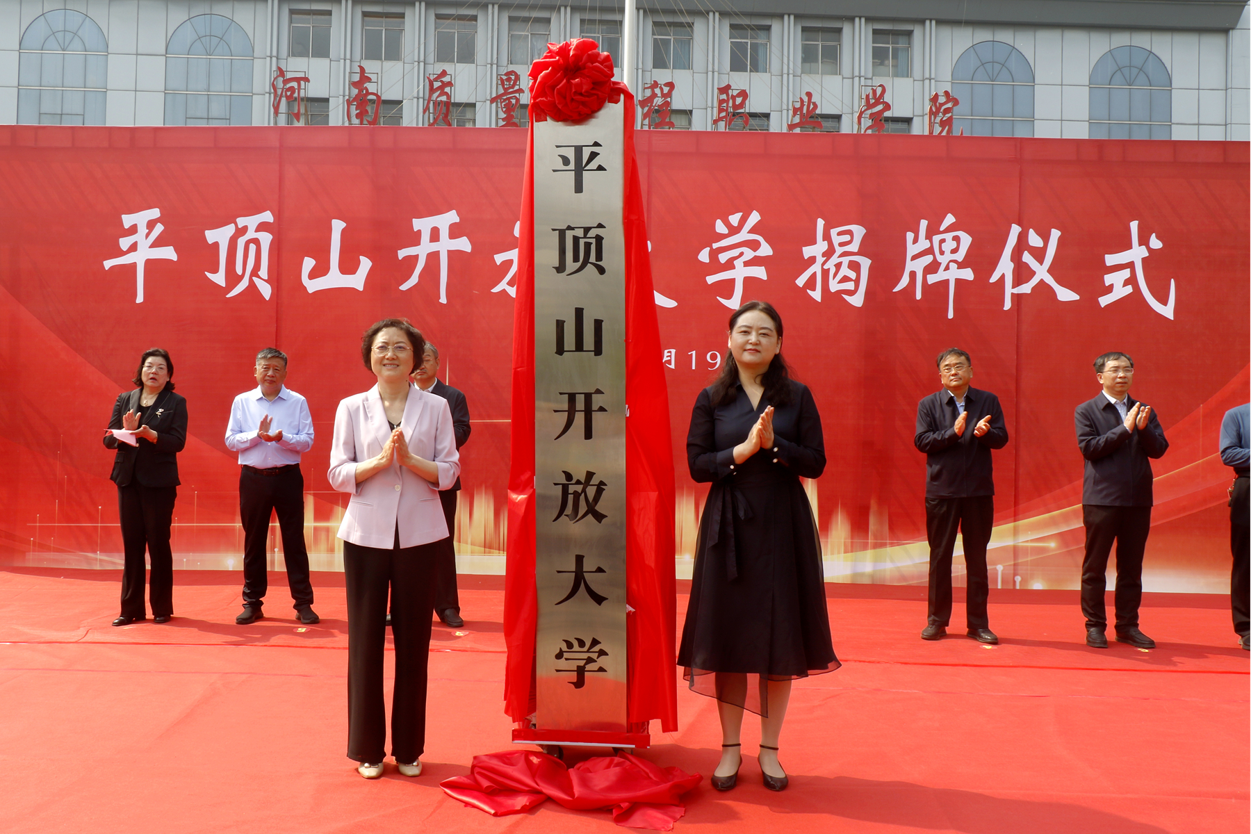 仪式上,赵继红和史晓天共同为平顶山开放大学揭牌。张昌升宣读了《平顶山市人民政府关于将平顶山广播电视大学更名为平顶山开放大学的批复》。