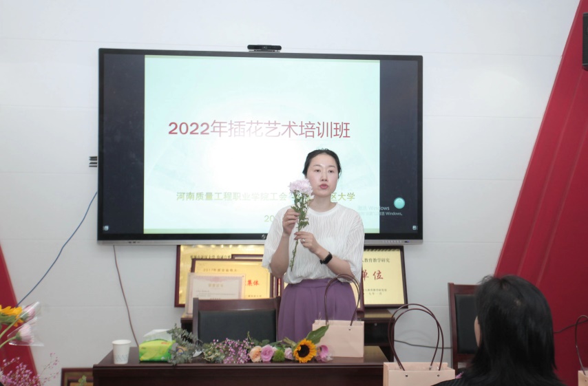 9月6日上午,学院工会与平顶山社区大学联合举办的2022年插花艺术培训在平顶山社区大学活动室展开。学院党委委员、平顶山社区大学校长温亚丽致词。