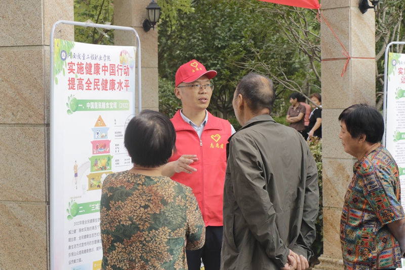 我院科研外事处、平顶山市食品安全检测科研中心等部门人员参加活动,向社区居民现场讲解了食品检测常识,膳食营养知识。食品安全专家提醒居民要谨慎选购包装食品,认真查看包装标识、食品标签等内容。活动现场,工作人员免费为社区居民开展饮用水、酒类等食品安全检测项目,受到社区居民欢迎。活动期间,共发放食品安全宣传资料400余份,咨询群众500余人次。