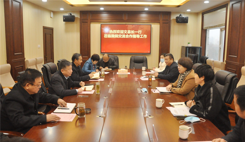 1月11日上午,叶县县长文晓凡一行莅临我院考察交流,洽谈校地共建合作事宜。学院党委书记邱红标、院长郑海金、常务副院长徐宗华等热情接待了来访人员并参加了交流活动。