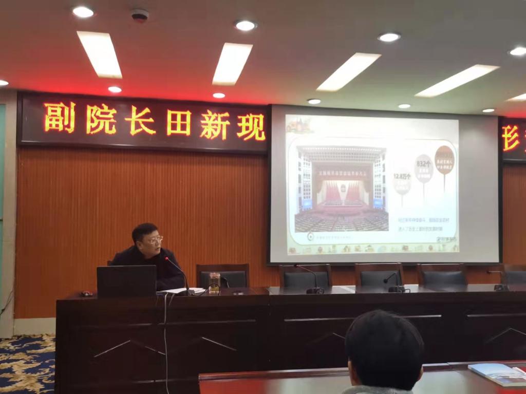 12月7日下午,副院长田新现教授为21移动商务3、4班的学生上了一堂主题为《谱写乡村全面振兴新篇章》的形势与政策课。