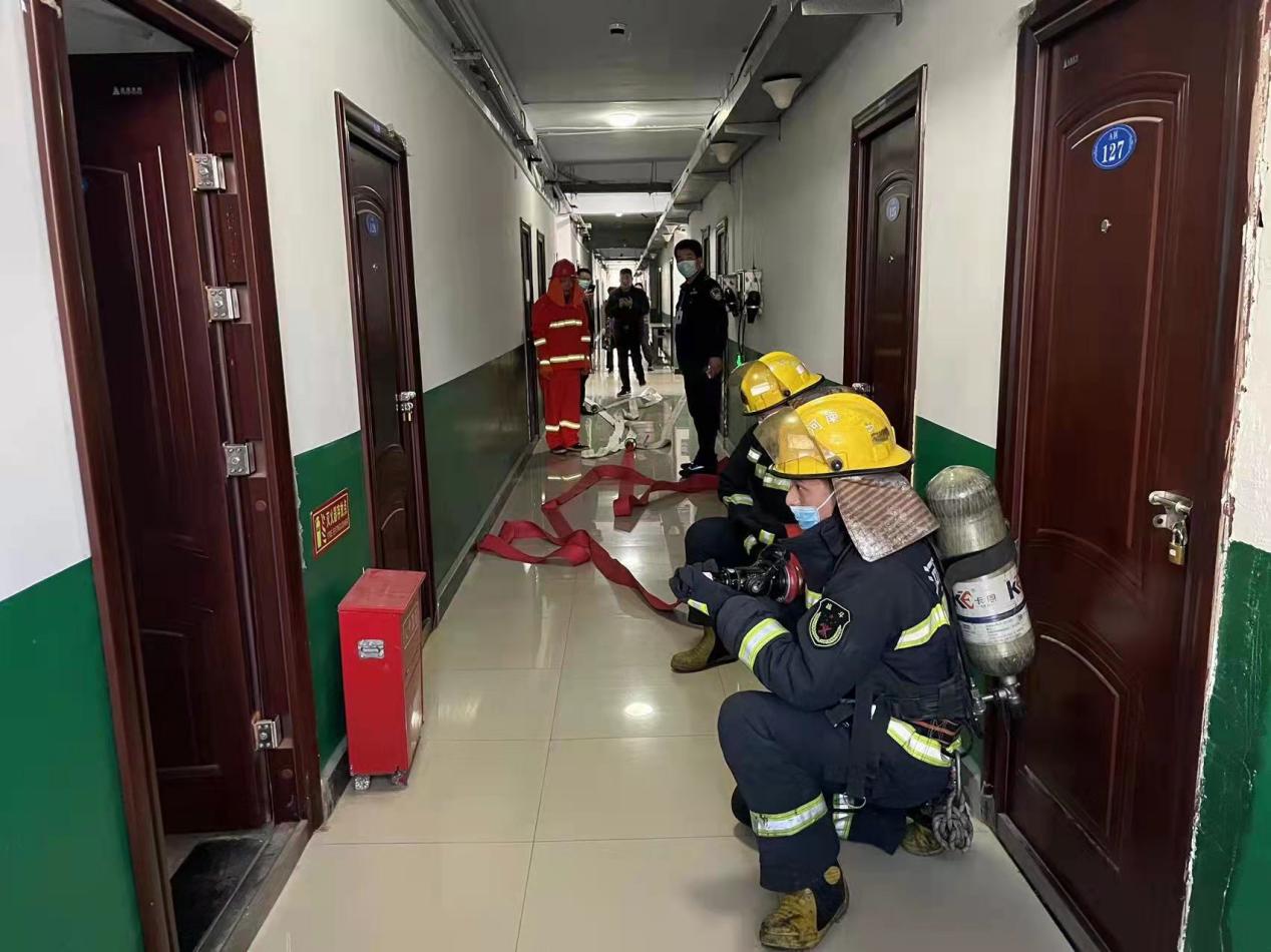演练前,指战员佟金雨对学生宿舍的消防疏散通道是否畅通、灭火器、应急灯、消火栓等消防设施是否完好有效进行了检查,就如何正确使用灭火器、消防栓水带进行了演示,对宿管人员进行了现场指导。随后,消防救援大队和保卫处消防科消防工作人员,模拟火灾现场进行灭火演练。佟金雨指出,消防安全意义重大,要健全巡检制度,确保疏散通道畅通、消防设施完好有效,切实将学院的消防安全工作落到实处,为全院师生创造一个良好的消防安全环境。