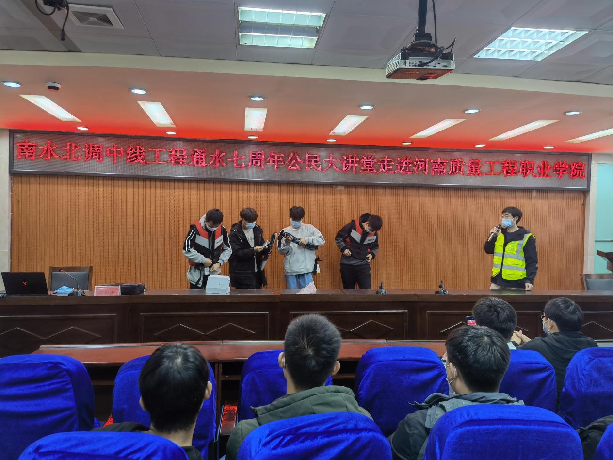 12月9日,在第二学术报告厅内,南水北调宝丰管理处副处长翟会朝给我院师生带来了一场“特殊”的讲座。为庆祝南水北调中线工程通水七周年,全面宣传南水北调工程的社会、生态、经济效益,宝丰管理处来院宣传,首次将南水北调公民大讲堂搬进大学课堂。