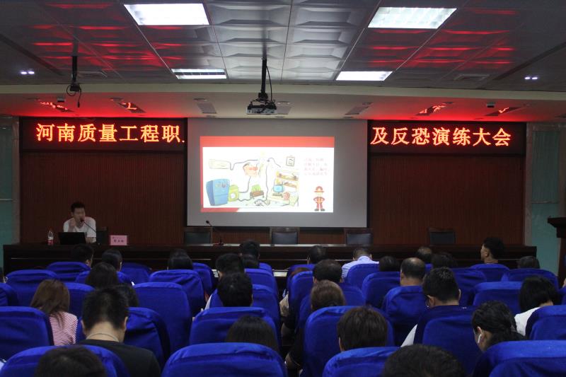 河南消防职业培训学校高级讲师彭立柱作专题讲座。彭老师结合近几年发生火灾案例,以图文并茂的形式,就如何预防火灾,如何扑救初期火情以及火灾现场如何逃生等知识进行了详细讲解。讲座结束后,保卫处治安消防科工作人员带领人员在食品检测大楼一楼大厅开展了消防实地演练和反恐实地演练。