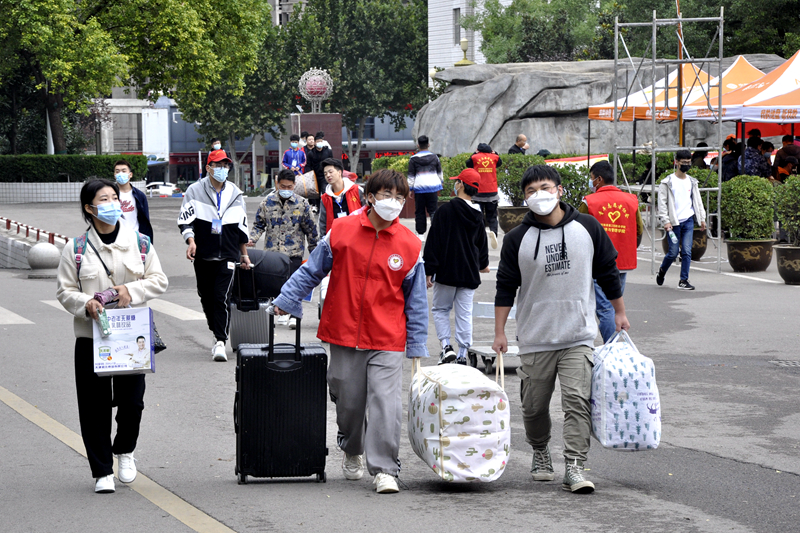 学院高度重视新生入学报到工作,专门成立了工作领导小组,制定详细的迎新工作方案,召开迎新工作协调会,周密部署各项迎新任务。根据学院安排,进校学生全程须佩戴口罩,按照指示标识分通道保持安全间距有序排队进入候检区;出示健康码、行程卡、48小时内核酸检测阴性证明,配合工作人员完成测温、身份验证、消毒等环节后方可进校,学生进校期间,学生家长和社会车辆一律不准进入校园。