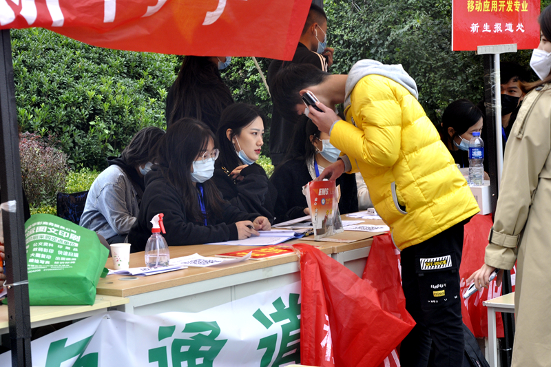 校园内,各迎新工作点人头攒动,宿舍楼前热闹非凡,秩序井然,各项工作有条不紊地展开。工作人员耐心地回答着学生和家长提出的各种问题,详细地讲解着学院的有关安排;各二级学院结合专业特色,在迎新现场通过各种形式展现自身的专业特色和丰富多彩的校园文化;学院专门设立“绿色通道”咨询站点,通过发放资助手册、政策宣传和现场答疑等方式帮助学生了解国家资助政策,方便家庭经济困难学生顺利入学。