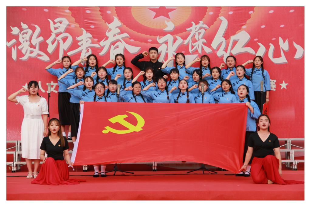 为庆祝中国共产党成立100周年,回顾党的光辉历史,讴歌党的丰功伟绩,6月3日,人文艺术学院在东田径场举行了“激昂青春 永葆红心”党史学习教育红歌合唱比赛。学院党委委员、电大校长温亚丽莅临现场,各部门、各单位相关人员及师生共同观看节目。