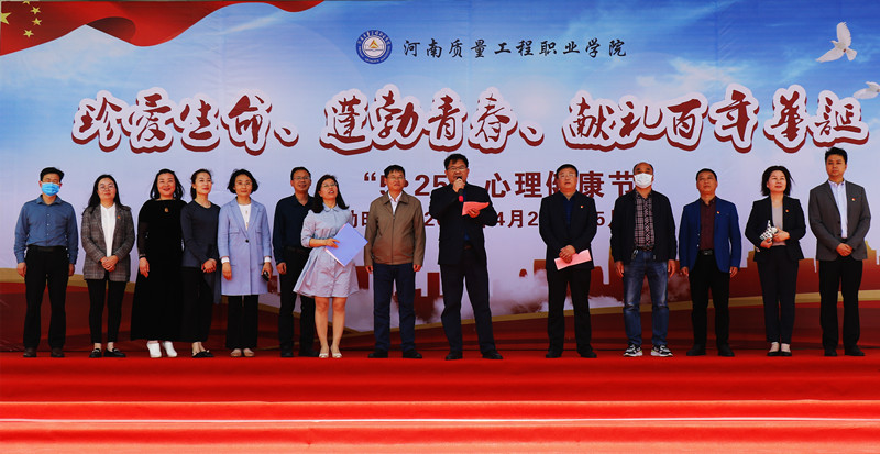 4月29日,我院 “珍爱生命、蓬勃青春、献礼百年华诞”“5•25”大学生心理健康节开幕式在质量广场举行。院领导姜葆亮、田新现出席开幕式,宣传部、团委负责人,各二级学院(部)支部书记,心理中心及“心语”协会师生参加开幕式。