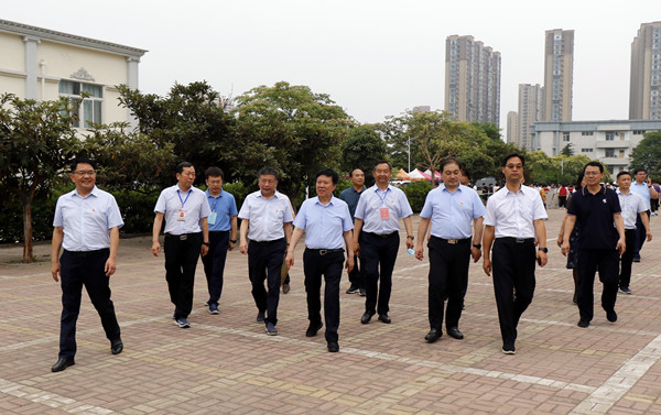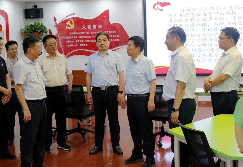 6月9日下午,平顶山市委书记周斌莅临我院调研指导工作,市委常委、市委秘书长杨克俊,市委常委、宣传部长、市委教育工委书记岳杰勇,学院领导邱红标、郑海金、徐宗华、葛长龙、姜葆亮、温亚丽、秦中文、田新现以及党办、宣传部、院办等相关人员陪同调研。